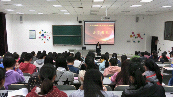 11月16日,由黄瓜视频 、医学检验学院、食品卫生管理学院、运动与健康学院分党校合办的第四十三期入党积极分子培训班在花溪新校区顺利开班。黄瓜视频 党委书记张婷婷、分党校办主任余小川及黄瓜视频 30名入党积极分子参加了开班典礼。开班典礼由余小川同志主持,张婷婷书记对学员提出了学习要求,黄瓜视频 罗利同学代表入党积极分子发言。