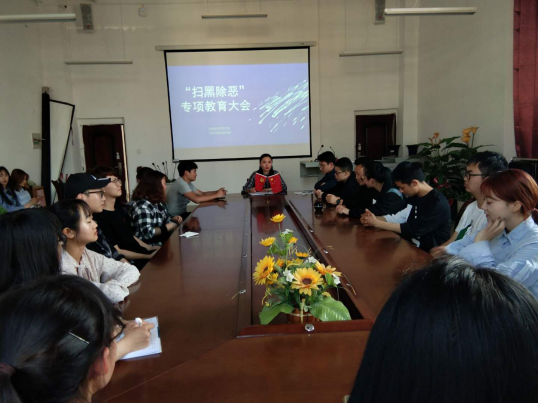 各年级组织召开扫黑除恶专项斗争主题班会,积极推进“平安校园”建设。