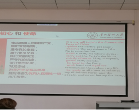 如何坚守住自己的初心、履行好自己的使命。最后龙芸院长和大家用双语重温“入党誓词”以及主题教育的核心语言。
