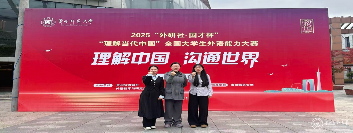 10月31日至11月1日,由贵州省教育厅主办,贵州师范大学、贵州省大学外语教学研究会、外语教育与研究出版社共同承办的2025“外研社・国才杯”“理解当代中国”全国大学生外语能力大赛贵州赛区选拔赛成功举办。我校选手在赛事中表现突出,共有8名同学斩获奖项:其中张子涵同学荣获演讲比赛金奖并成功晋级国赛,费家蕾同学获演讲比赛铜奖;综合能力比赛中,杨慧诗同学获银奖,蒋涵同学获铜奖;口译比赛中,张晗溪同学获铜奖;短视频比赛中,卢雪、王博雅、刘宇阳、费家蕾同学荣获铜奖。