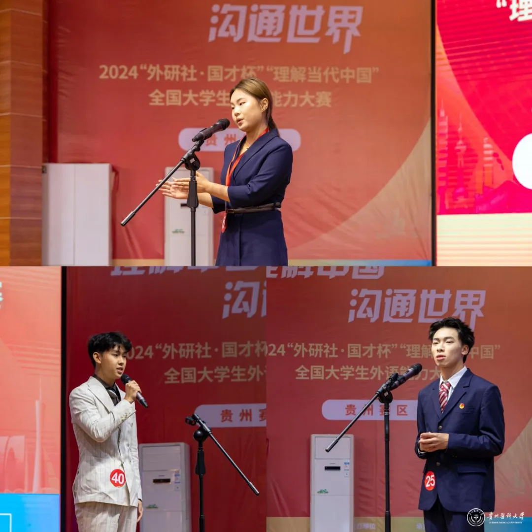 11月2日至3日,由贵州省教育厅主办,安顺学院、贵州师范大学、贵州省大学外语教学研究会、外语教育与研究出版社共同承办的2024“外研社·国才杯”“理解当代中国”全国大学生外语能力大赛贵州赛区选拔赛举办。我校共有9名同学获奖,其中张智欣同学荣获演讲比赛金奖并晋级国赛,周昊洋、黄俊超同学获演讲比赛银奖。在综合能力比赛中,吴金亮、马艺霖同学获银奖,蒋涵、朱颖同学获铜奖。在短视频比赛中,周宇鸣同学获一等奖,廖若祎同学获二等奖。