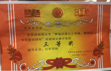 代表队在初赛中表现优异进入复赛。复赛中表现突出,最终获得我校此次辩论赛的三等奖。