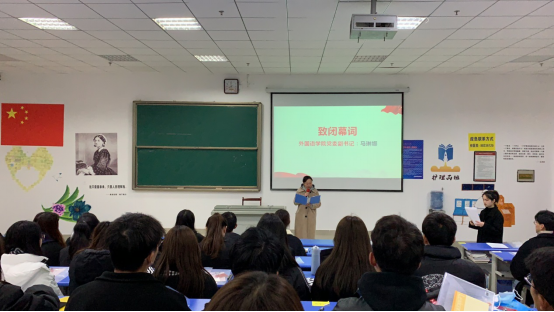 这是一次热烈而隆重的大会,是一次团结进取、振奋精神、坚定信心的大会。我们坚信,在校团委和学院党委、团委的正确领导下,全院青年学生一定能够以这次大会为新的起点。在今后的学习生活中,不但要努力做到解放思想,实事求是,抢抓机遇,敢于挑战,求真务实,锐意进取,而且还要谱写出更加壮丽的青春篇章!