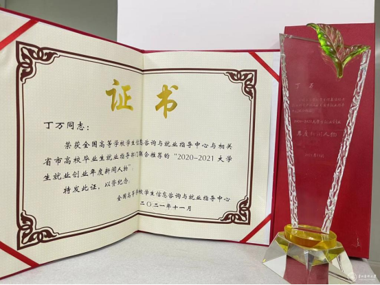 根据《关于启动“2020-2021大学生就业创业年度新闻人物”推荐工作的通知》要求,由我校选送的2017届毕业生典型丁万获评全国“2020-2021大学生就业创业年度新闻人物”。据悉,此次大学生就业创业年度新闻人物每省一个名额,全国共评选25名。