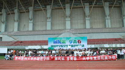 于南校区东体育场开展“展风采 享青春”大学生素质拓展活动。院党委书记张婷婷、院长龙芸、党委副书记马琳娜、副院长冉海勇、组织员刘梦珏、翻译教研室负责人曾天娇、学生科科长黎文清、团委副书记徐艺娟出席本次活动。