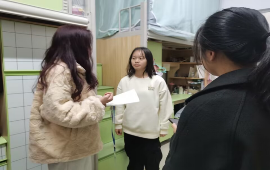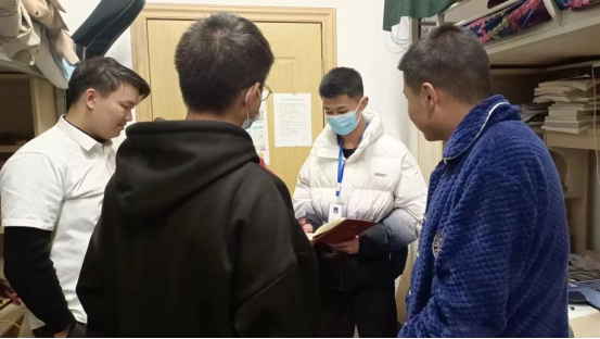 走访了学生宿舍,与同学坐下来进行交谈,面对面了解他们的学习,生活情况,关心他们的身体状况,对同学们存在的困惑予以解答和帮助。关于疫情防控常态化的要求,我们耐心地对同学们一一作了解释。
