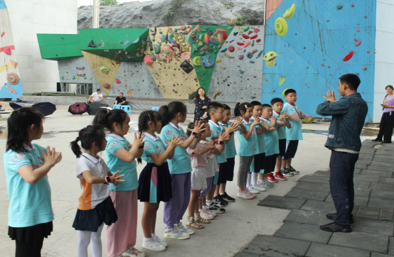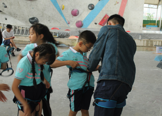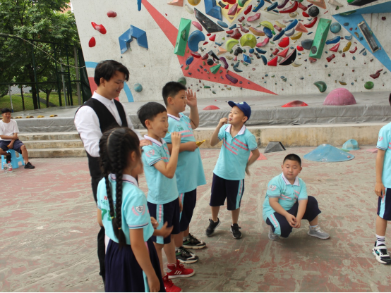为增进小学生对体育文化的了解,激发学生的求知欲、探索欲、好奇心与冒险精神。上午十点,志愿者带领小朋友们来到了我校的攀岩馆,教练梁老师带领小朋友们做热身,教授攀岩基础知识和安全事项。每个小孩都很兴奋和积极,期待着自己的初次攀岩挑战。做好保护措施后,在家长以及老师们给予他们鼓励和支持下,小朋友们开始了一对一指导攀岩体验活动,攀岩过程中,梁老师强调技巧要领,纠正四肢动作,鼓励孩子们克服恐惧,努力登顶。孩子们在尝试和挑战中体验攀岩的魅力,展现出勇于登顶的气势!