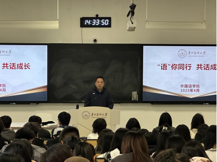 学院党委书记、院长付启宏先在学院会议室给全体教职工开展了理论宣讲,后到R101教室以“‘语’你同行 共话成长”为主题同学生科科长黎文清、团委书记徐艺娟一同展开宣讲。