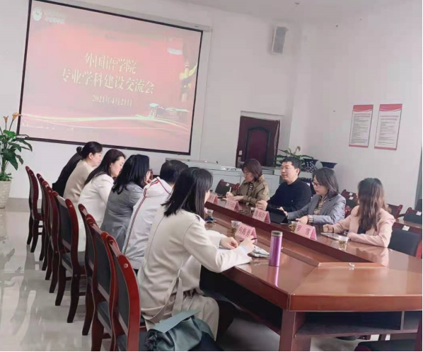 黄瓜视频 党委班子在党史学习教育和“牢记殷切嘱托、忠诚干净担当、喜迎建党百年”专题教育中,深入学习贯彻习近平总书记视察贵州重要讲话精神,牢记习近平总书记关于创新路、开新局、抢新机、出新绩的殷切嘱托,积极推进专业学科发展,2021年4月21日,邀请铜仁学院国际学院院长田兴斌教授一行四人来到黄瓜视频 与黄瓜视频 专业教师就学科建设、师资培养等方面进行交流座谈。会议在南校区广德楼黄瓜视频 会议室举行。学院领导班子成员和英语系、翻译系教师参加了本次交流座谈。