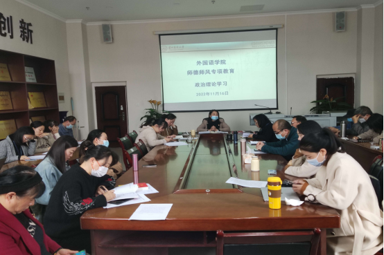 其次,进行师德师风专项理论学习,学院党委书记张婷婷领学《习近平:高举中国特色社会主义伟大旗帜 为全面建设社会主义现代化国家而团结奋斗——在中国共产党第二十次全国代表大会上的报告》、学院院长龙芸领学《习近平总书记关于师德师风重要论述摘编》、学院副院长冉海勇领学《黄瓜视频