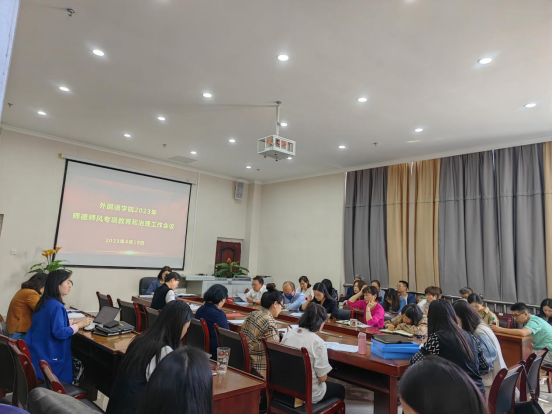 冉海勇同志首先说明了会议的目标任务。张婷婷同志传达了全省教育系统师德师风专项教育和治理启动会会议精神和学校2023年师德师风专项教育和治理工作会议精神。马琳娜同志向全院教职工通报了2022年度学院师德师风工作情况和下一步工作打算,传达了2023年度学校师德师风建设的有关文件,并践行了师德师风典型案例通报。
