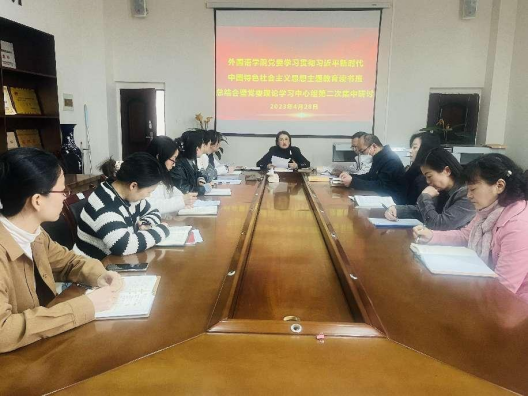 4月28日,外国语学院开展了学习贯彻习近平新时代中国特色社会主义思想主题教育读书班总结会暨党委理论学习中心组2023年第二次集中学习研讨,院领导班子成员、副科级以上干部、各党支部委员代表参加,会议由院党委书记张婷婷主持。