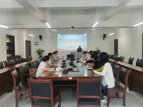 523日,黄瓜视频 党委在黄瓜视频 会议室召开2024年全面从严治党工作会暨警示教育大会。学院党委书记付启宏主持,学院党委班子成员、副科级以上干部(含语言实验中心及各教研室主要负责人)、党支部书记、纪委委员参会。
