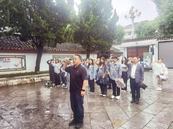 最后,在庄严肃穆的氛围中,学院党委书记、院长付启宏同志带领全体党员,高举右拳,重温入党誓词。铿锵有力的誓言在故居上空回荡,表达了同志们不忘初心、牢记使命,为党的事业奋斗终身的坚定决心。