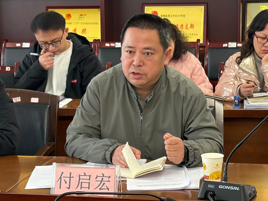 党委书记、院长付启宏主持,学院党委领导班子成员出席,学院各党支部书记、各科室负责人、各教研室主任及实验教学中心主任列席会议。校第十一督导组到会指导。